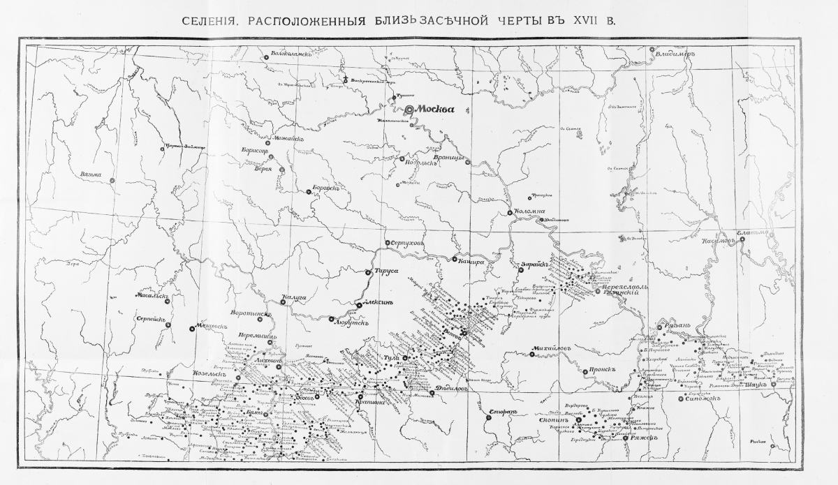 Несколько новых острожков для защиты населения от набегов татар, ногаев и черкас появились еще на завершающем этапе Смуты и в первые послесмутные годы. Причем появились без помощи центрального правительства, невзирая на запрет частного крепостного строительства в России, силами местных землевладельцев — включая царских родственников (мать первого царя из новой династии, великую иноку Марфу Ивановну, и его дядю, боярина Ивана Никитича Романова) — и земледельческого населения их поместий и вотчин. Первым в 1614 году, на следующий год после венчания Михаила Федоровича на царство, срубил вокруг своего вотчинного села острог Романов (Романово городище, Романов-в-Степи) Иван Никитич. Этот острог был сожжен запорожцами гетмана Конашевича-Сагайдачного в 1618 году, но вскорости восстановлен и позже вошел в систему Белгородской черты. Следующим оказалось село Доброе, поделенное к 1615 году на жеребьи между вотчинниками — московскими Новоспасским и Чудовым монастырями и Иваном Гавриловичем Бобрищевым-Пушкиным. Последний и срубил вскоре после 1615 года на своем жеребье острог Добрый (Добринское городище, Доброе городище), где могли укрываться не только его крестьяне, но и крестьяне монастырских жеребьев и тянущих к селу деревень. В 1646–1647 годах Добрый был отписан в казну и преобразован в уездный город. В 1622–1623 годах в дворцовом селе Троицком по прямому указанию матери царя, Марфы Ивановны, «зарубили» крепость — Троицкий острог (Троицк). Тогда же по решению монастырских властей срубили острог вокруг Лебедянского Свято-Троицкого монастыря (Новой Яблоновой поляны, Троицкой Яблоновой пустыни). В начале 1620-х был возведен острог в Чернавске, к 1626 году — острог вокруг Красной Слободы (Краснослободск), к 1627 году городом Наровчатским Городищем (Наровчатовским острогом, Наровчатским, Наровчатым) стало одноименное бывшее село.