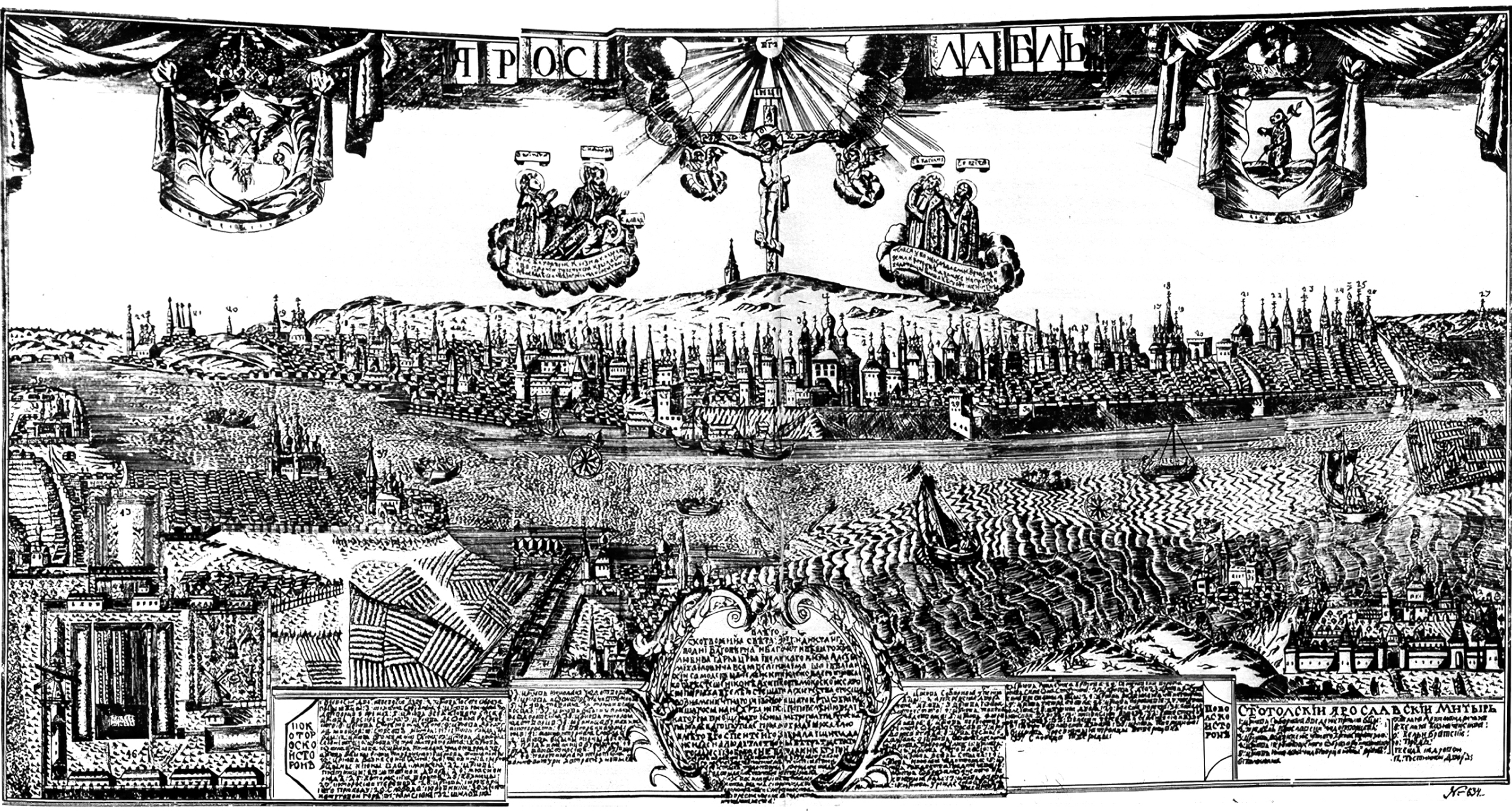 Административно Ярославль делился на семь сотен, каждая из которых сложилась вокруг наиболее значительных городских храмов: Городовую, Дмитровскую, Духовскую, Никольскую, Спасскую, Сретенскую и Толчковскую. Значительная часть жителей города занимались торговлей. К концу XVII века в Ярославле действовали 32 торговых ряда (Рыбный, Соляной, Мучной, Овощной, Калачный, Пряничный, Сапожный, Овчинный, Седельный, Шапочный, Платяной, Рукавичный, Железный, Серебряный, Горшечный, Тележный, Иконный и другие), где располагалось порядка 750 торговых мест — лавок, шалашей, полок (прилавков), харчевных изб. Примерно четверть торговцев Ярославля продавали продукты питания, примерно столько же торговали продукцией кожевенного производства, бывшего здесь главным ремесленным промыслом. Важной частью экономической жизни ярославцев было изготовление льняных тканей; железоделательную отрасль представляли полсотни городских кузниц. Именно ярославским купцам в 1638 году поручили ковать для Астраханского кремля металлические элементы фортификационных сооружений, причем общий вес выделенного для этого железа превысил 80 тонн. Всего же в Ярославле к концу XVII века ремеслом зарабатывали на жизнь около 1200 мастеров (каждый шестой из них — кожевенник) приблизительно 100 специальностей. Немалая часть жителей города кормилась рекой: в Ярославле располагались девять ловецких (рыболовных) слобод, поставлявших осетра, стерлядь, севрюгу и белорыбицу не только на рынок, но и к царскому столу.